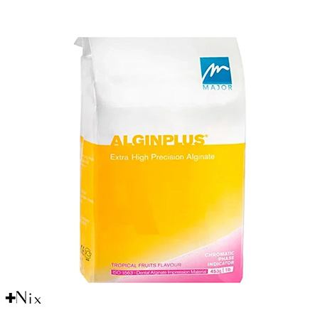 از آلژینات آلژین پلاس ماژور می‌توان برای قالب‌گیری اولیه، فک کامل و یا جزئی استفاده کرد. طعم مطبوع و رایحه میوه‌ای این ماده باعث افزایش راحتی بیمار در هنگام قالب‌گیری می‌شود. بسته‌بندی آن با فناوری MAP انجام شده که ماندگاری محصول را تا ۶ سال افزایش می‌دهد.